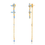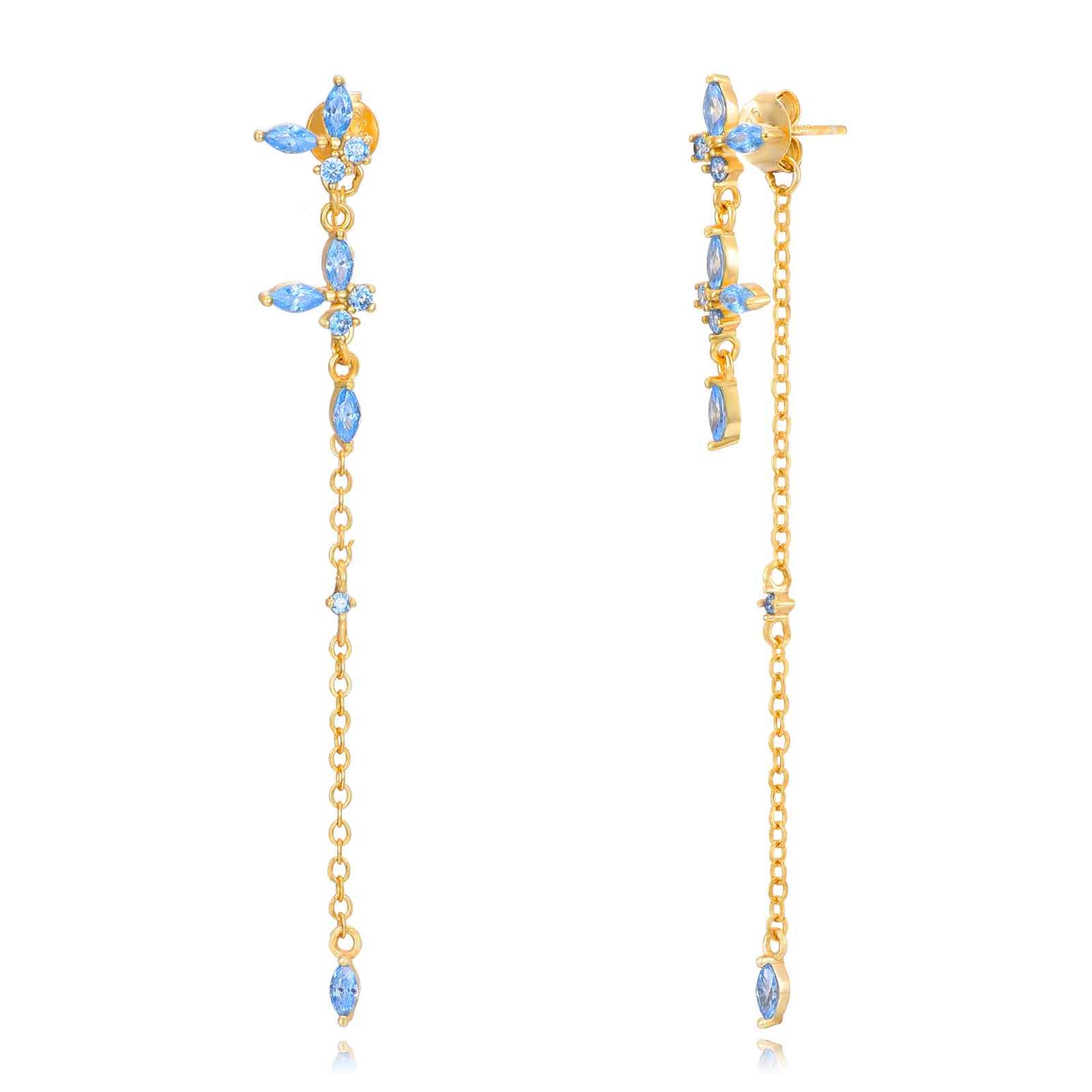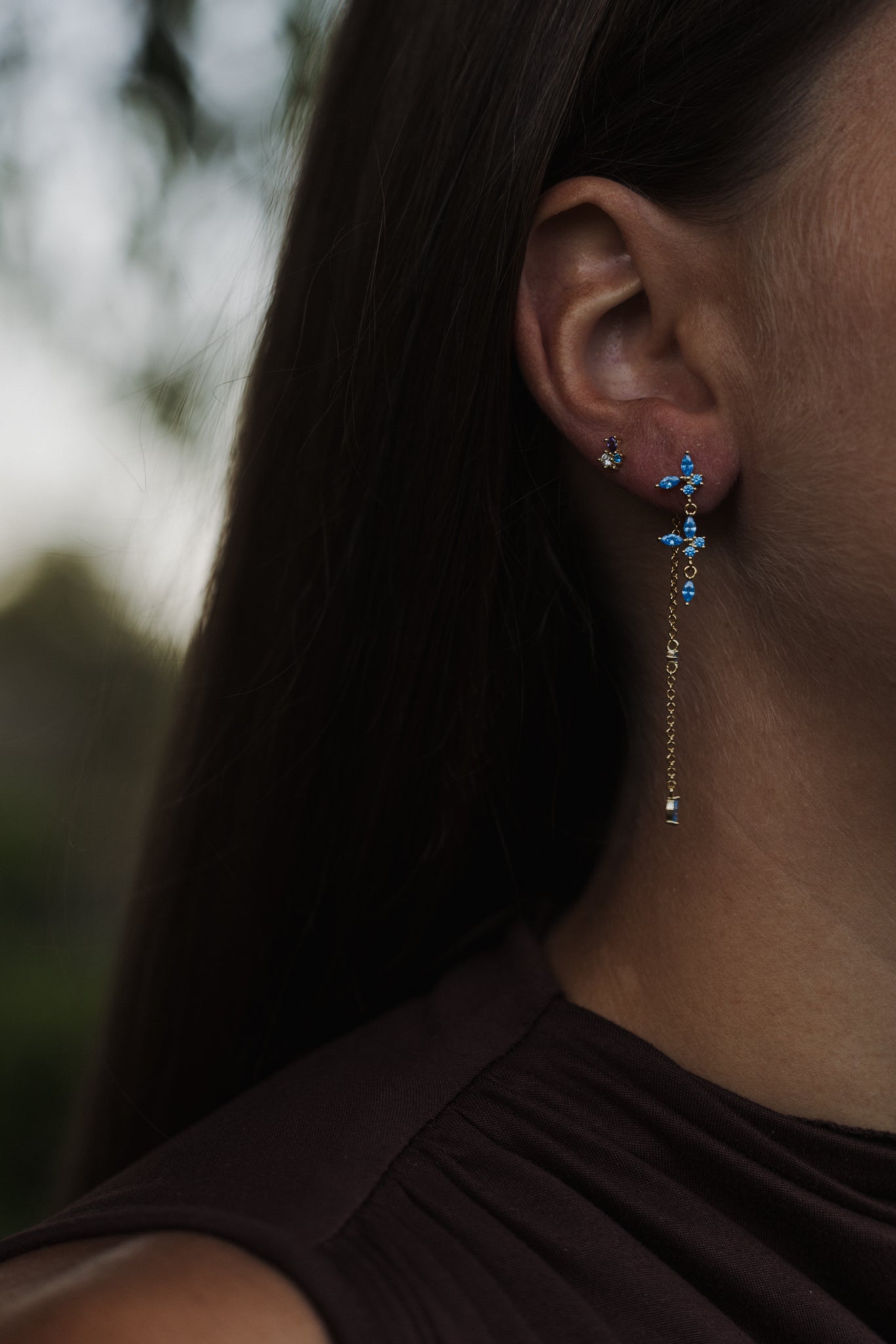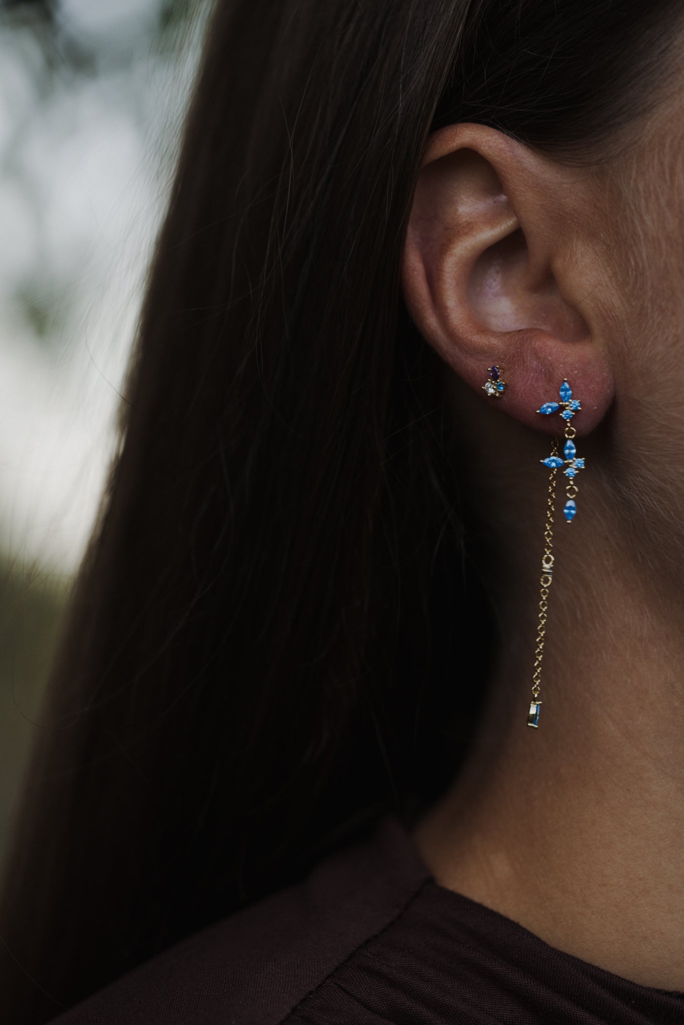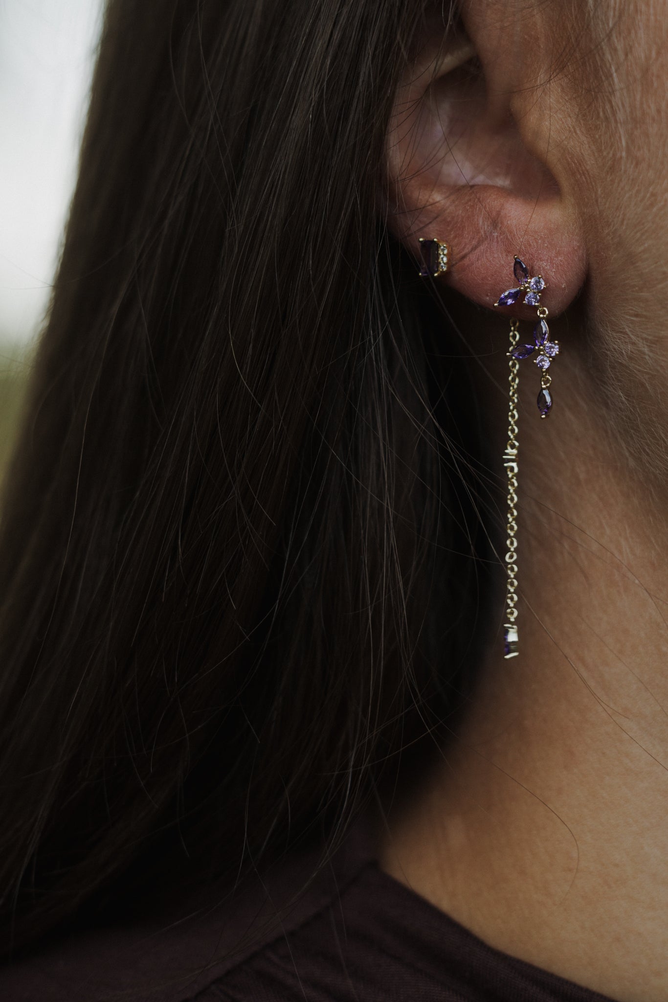 De Blooming Shine Earrings vangen de essentie van een schitterende bloem in beweging. Fonkelende zirconia’s vormen delicate bloemaccenten, verbonden met een verfijnde ketting die het licht bij elke stap laat dansen. Verkrijgbaar in diep paars voor een mysterieuze, sensuele look of in hemelsblauw voor een frisse en sprankelende uitstraling. Een moderne klassieker die moeiteloos van dag naar nacht meegaat.