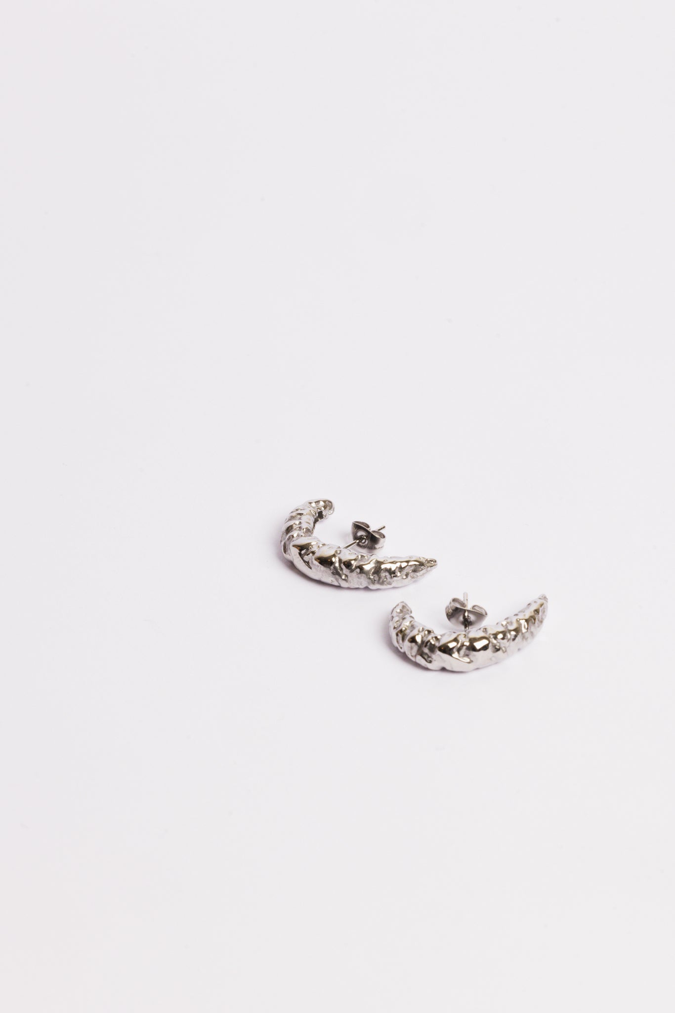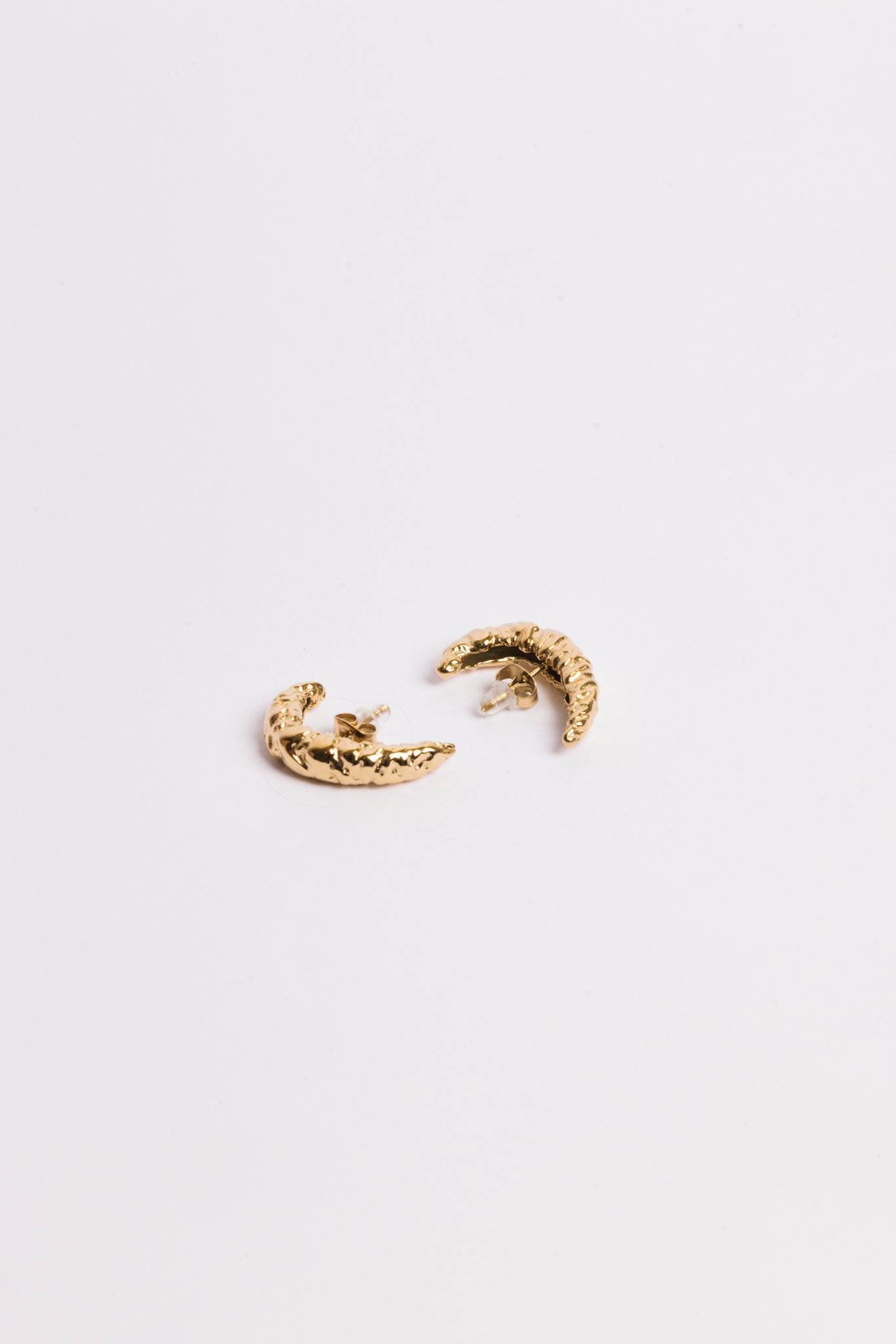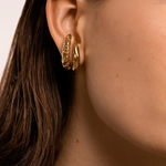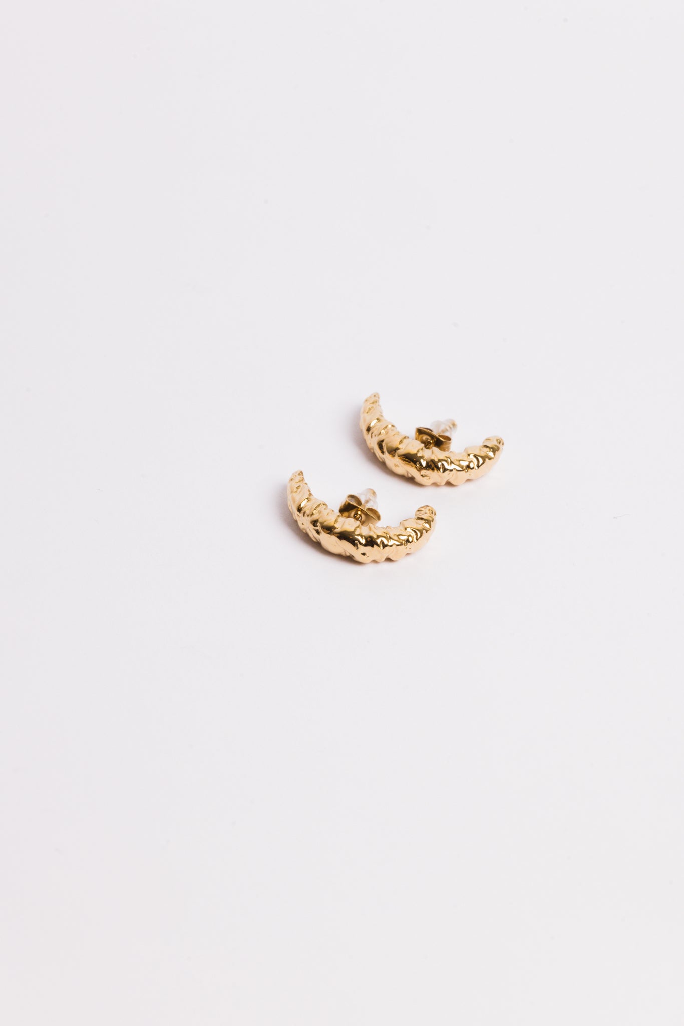 De Moon Hoops vormen een subtiele, maar uitgesproken ear-cuff look — zonder dat je extra piercings nodig hebt. De organische halve maanvorm heeft een verfijnde, getextureerde afwerking die doet denken aan maansteen en gesmolten metaal.
