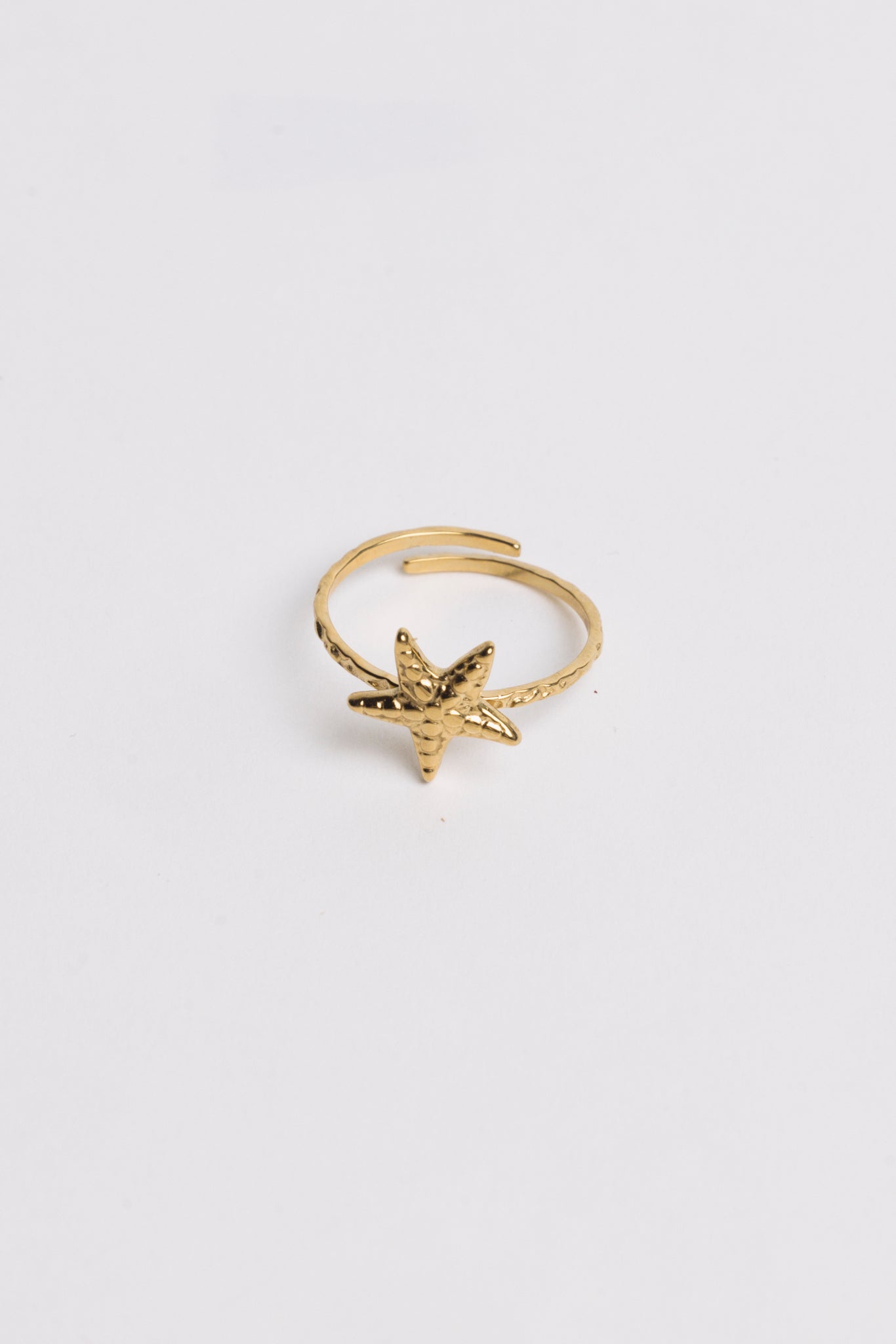 Een verfijnde ring met een elegante zeester als stralend middelpunt. Het speelse wrap design geeft deze ring een moderne en luchtige uitstraling, perfect geïnspireerd door de schoonheid van de zee. Draag hem solo als subtiele eyecatcher of combineer met andere sieraden voor een trendy look. Verstelbaar in maat voor een comfortabele fit.