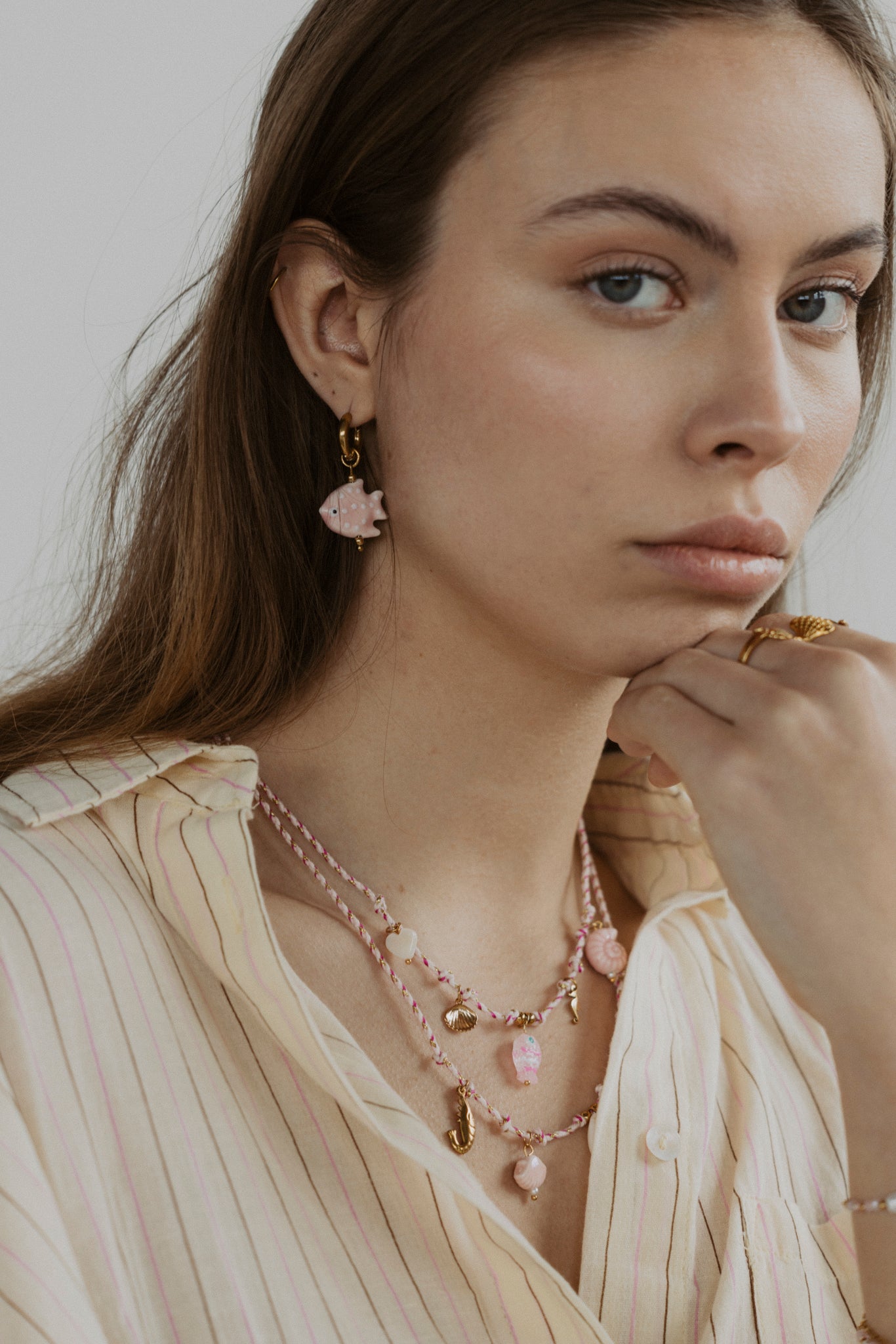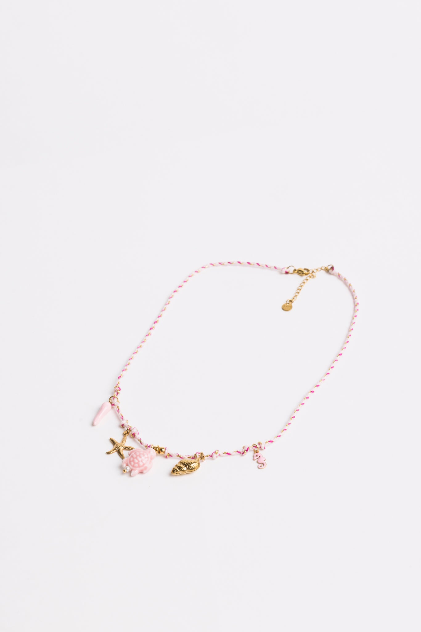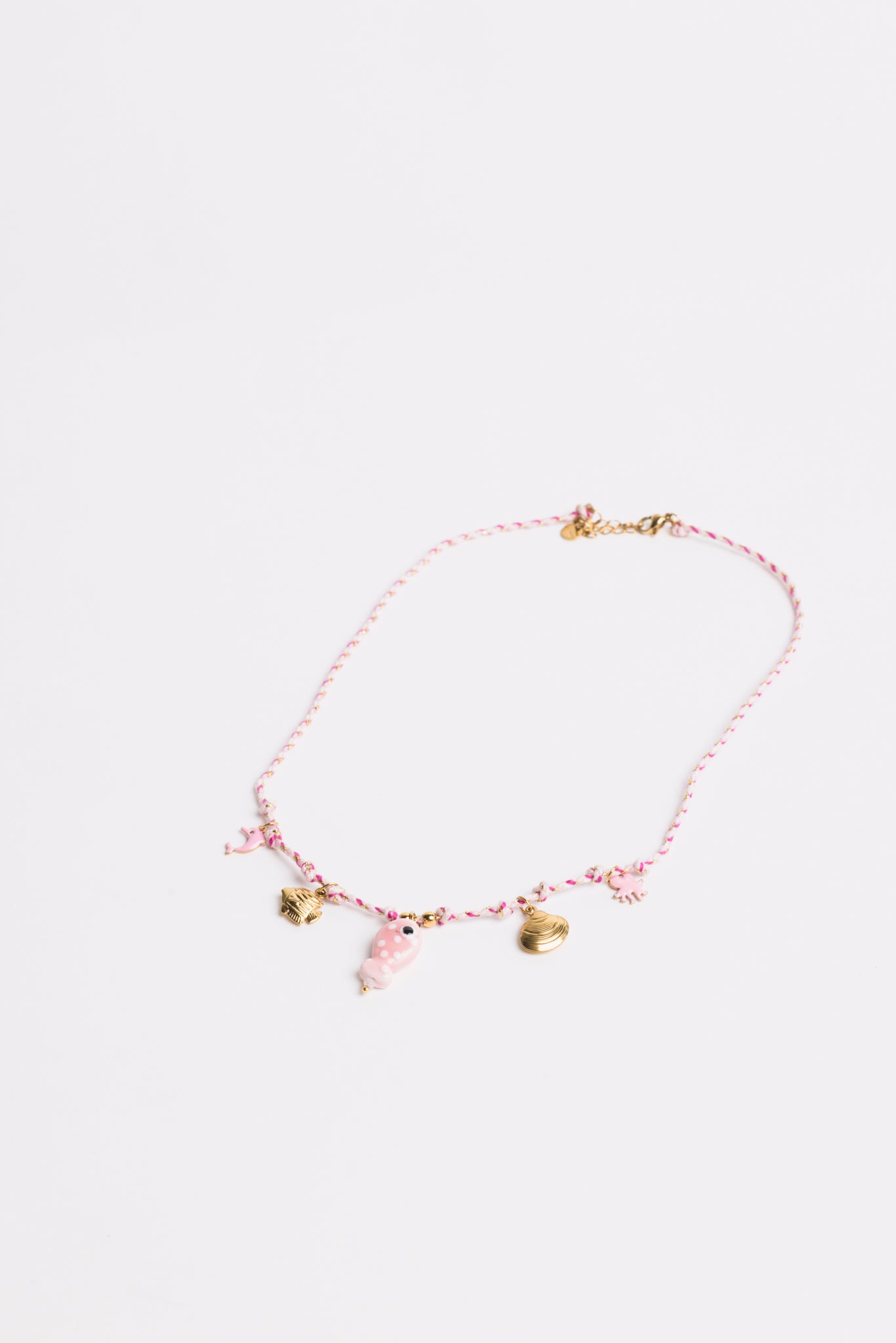 Deze speelse roze charm ketting is perfect om te combineren en te layeren met andere kettingen en de bijhorende armbandjes. Afgewerkt met zomerse hangertjes en subtiele details voor een warme, vrolijke uitstraling. Dankzij de verstelbare sluiting draag je hem altijd op jouw ideale lengte. Verkrijgbaar in verschillende varianten binnen één stijlvolle collectie.